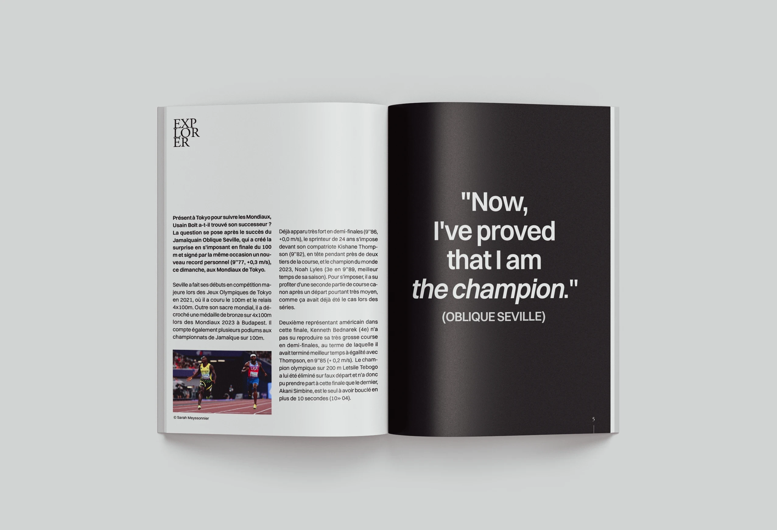Explorer Magazine was born from this reflection, a desire to reconnect with the sensory experience of reading. It aims to merge my love for sports with my interest in design, creating a publication that gives meaning and beauty back to sports journalism.