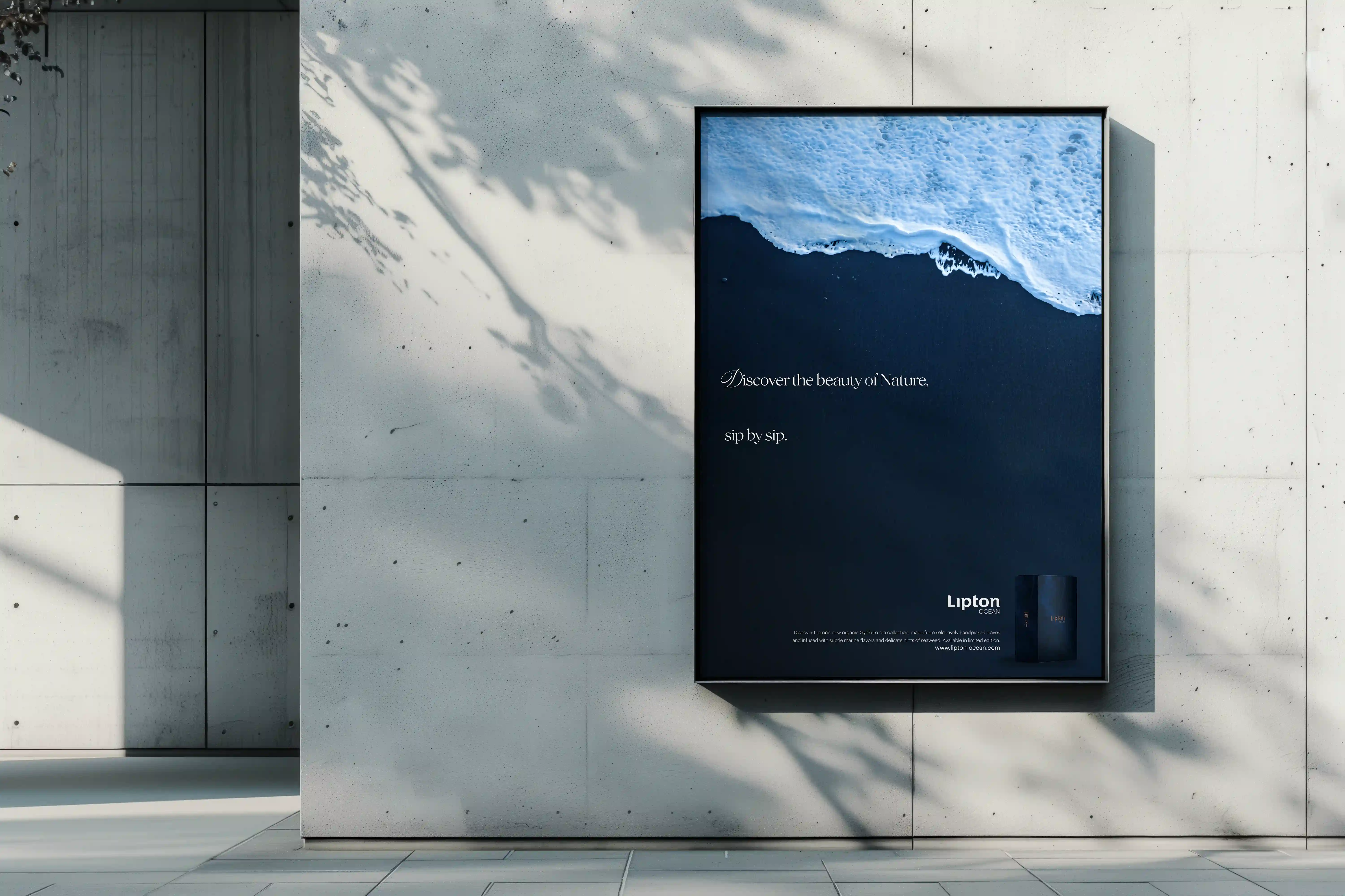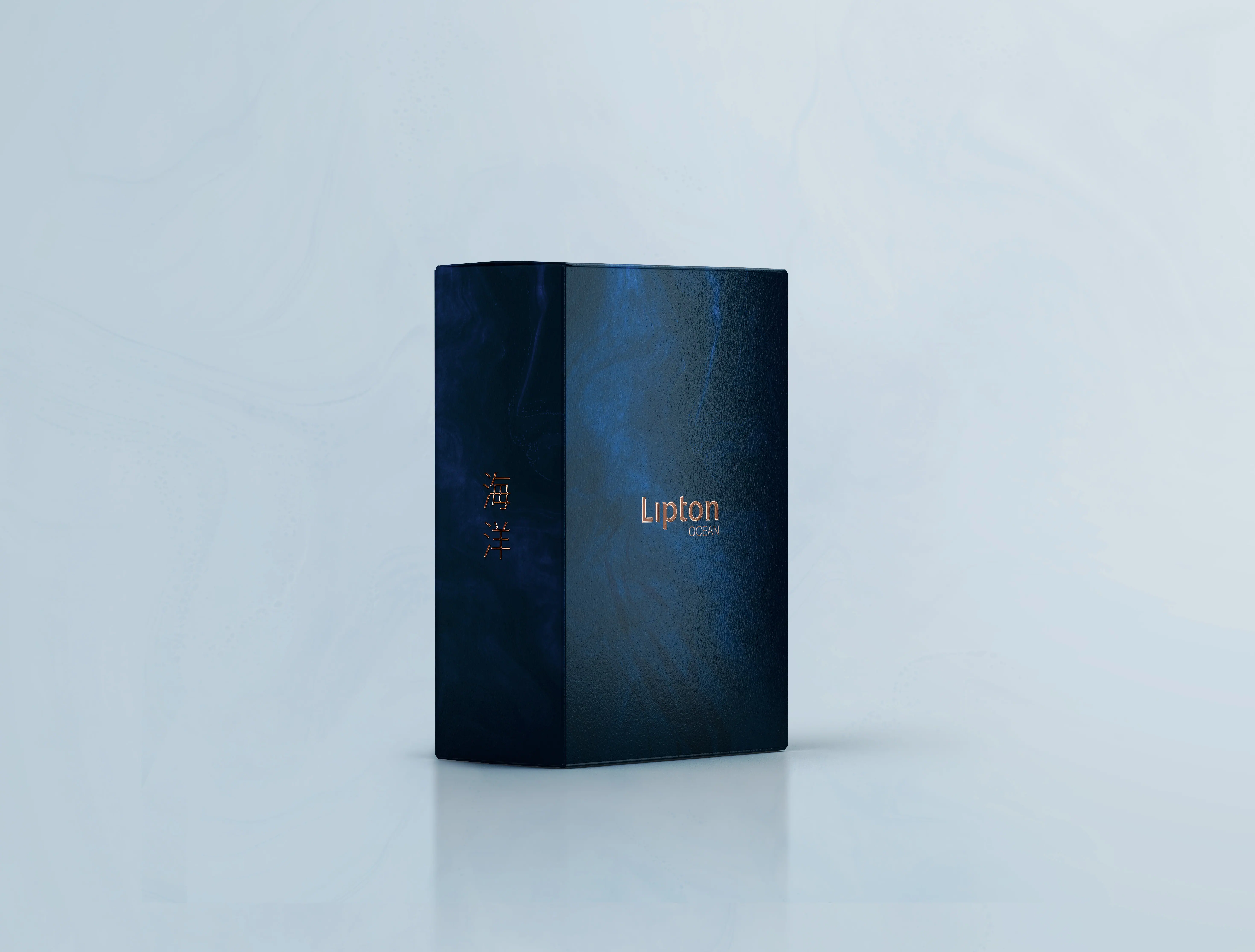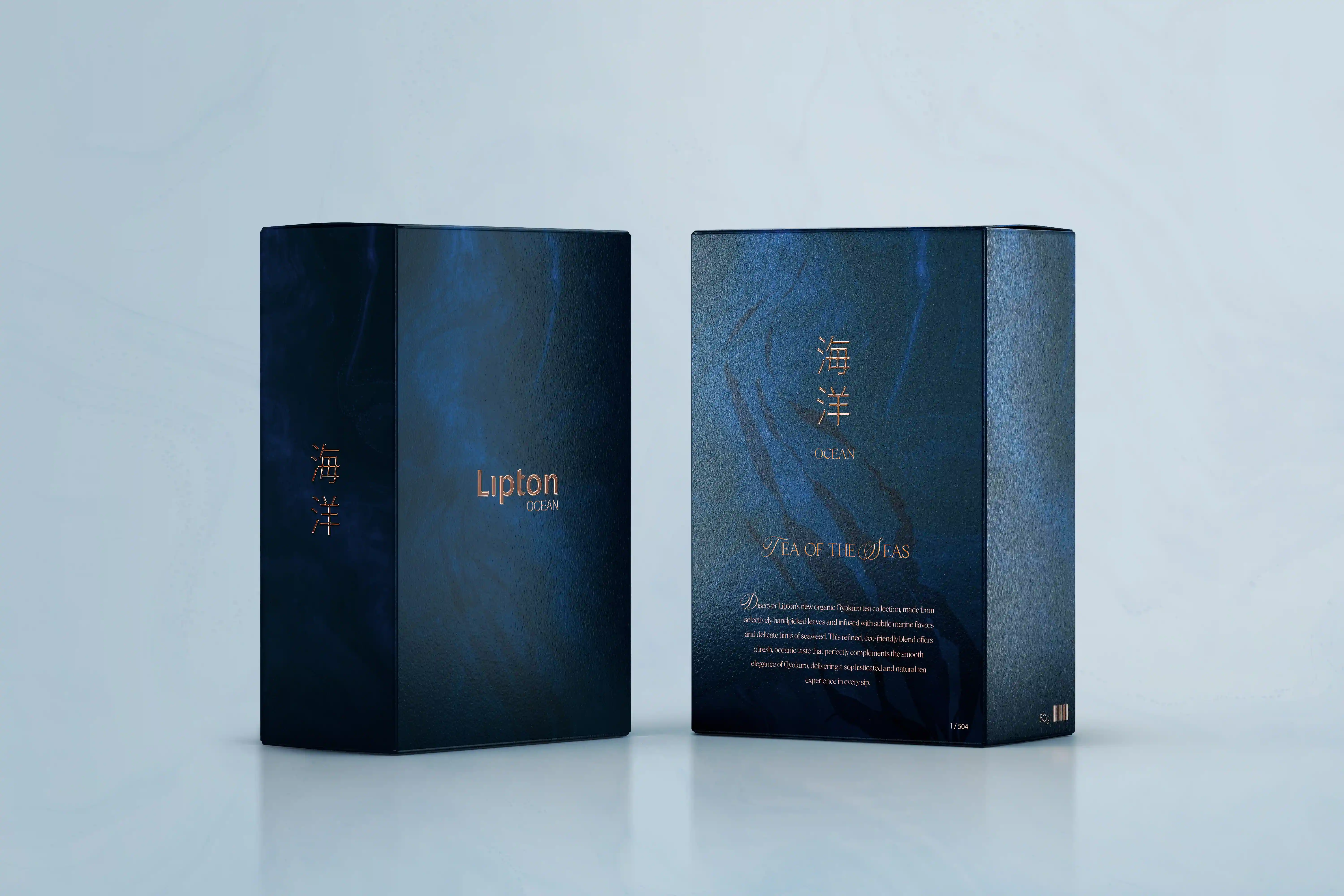 Drawing inspiration from the traditional Gyokuro tea-making process known for its umami and marine notes, I developed a specific high-end range: Lipton Ocean. Visuals combine Deep Blue to evoke the ocean’s depth, and Bronze to symbolize refinement and heritage which create a bridge between traditional tea culture and modern luxury.