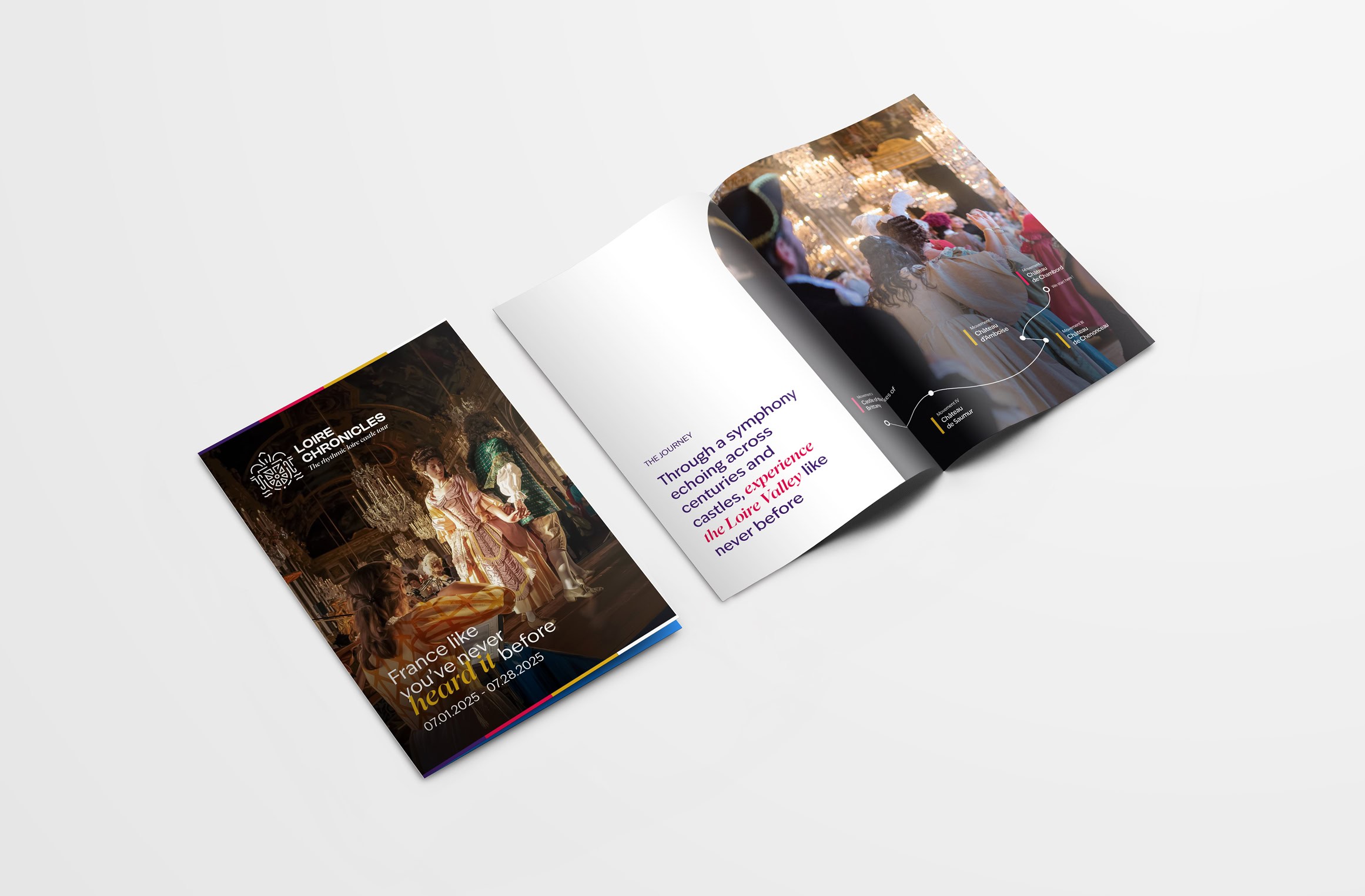 Visitors explore the castles through a carefully crafted musical journey. The design challenge was to strike the right balance between the classic heritage of the monuments and the poetic rhythm brought by the music.
